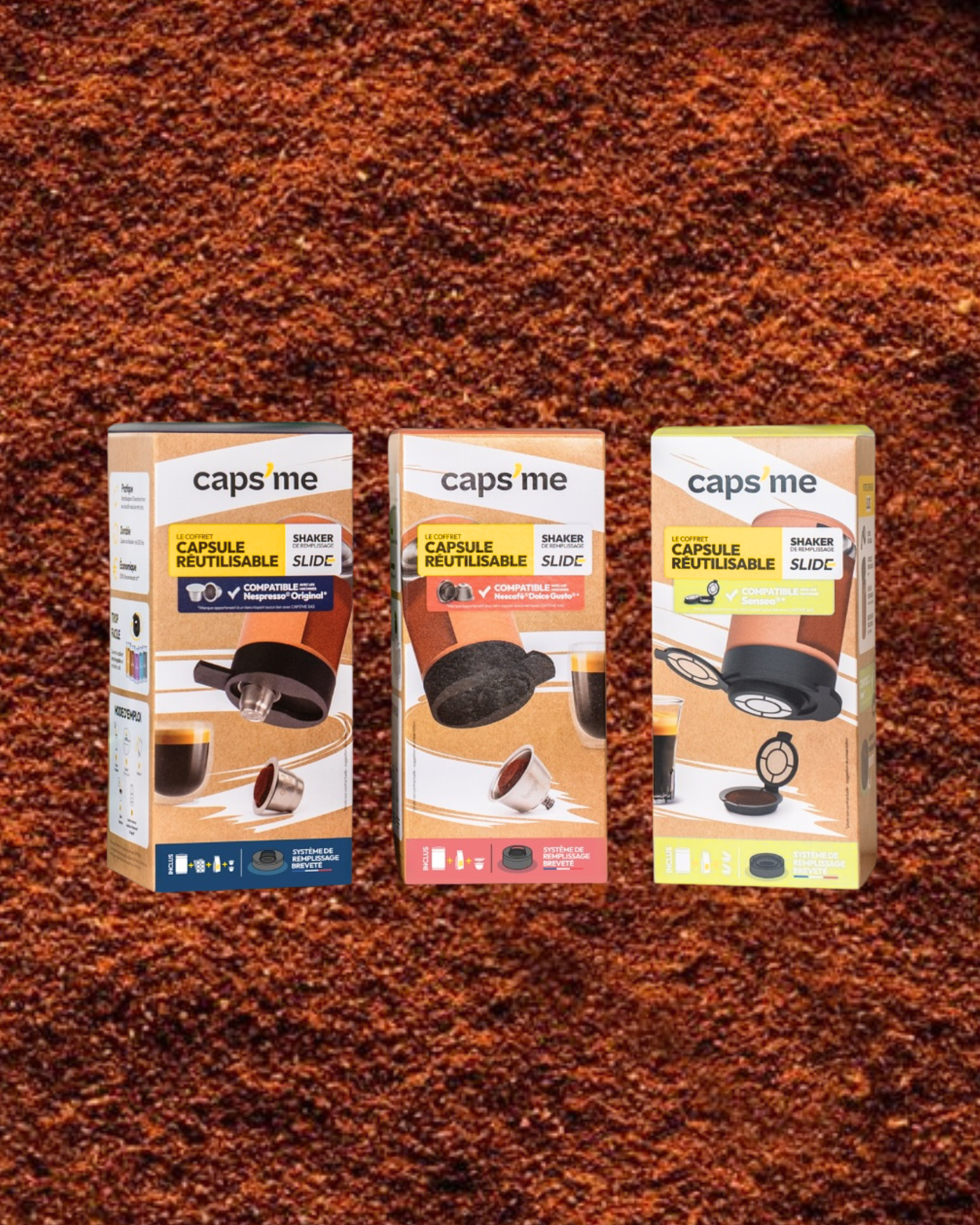 Découvrez les capsules réutilisables de Caps'me adaptées pour les machines Nespresso®, Dolce Gusto® et Senseo®. Ces capsules vous permettent de déguster votre café de spécialité préféré.